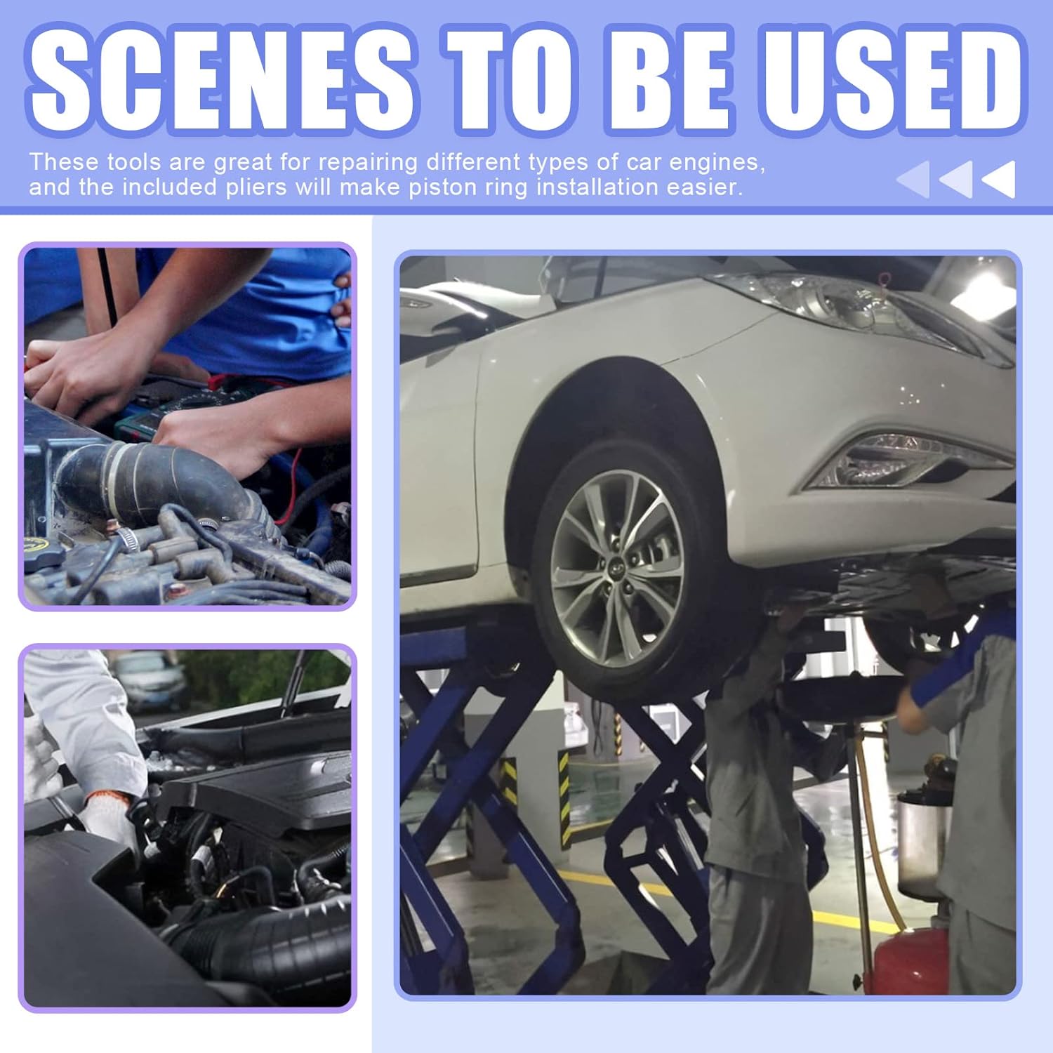 You'll receive a piston ring compressor set including 2pcs piston ring pliers and 13pcs piston rings. These tools are good helper for repairing different types of car engine, the pliers included will make piston rings' installation more easily. For easy to carry, we also provided a case for storing piston ring compression tool set.