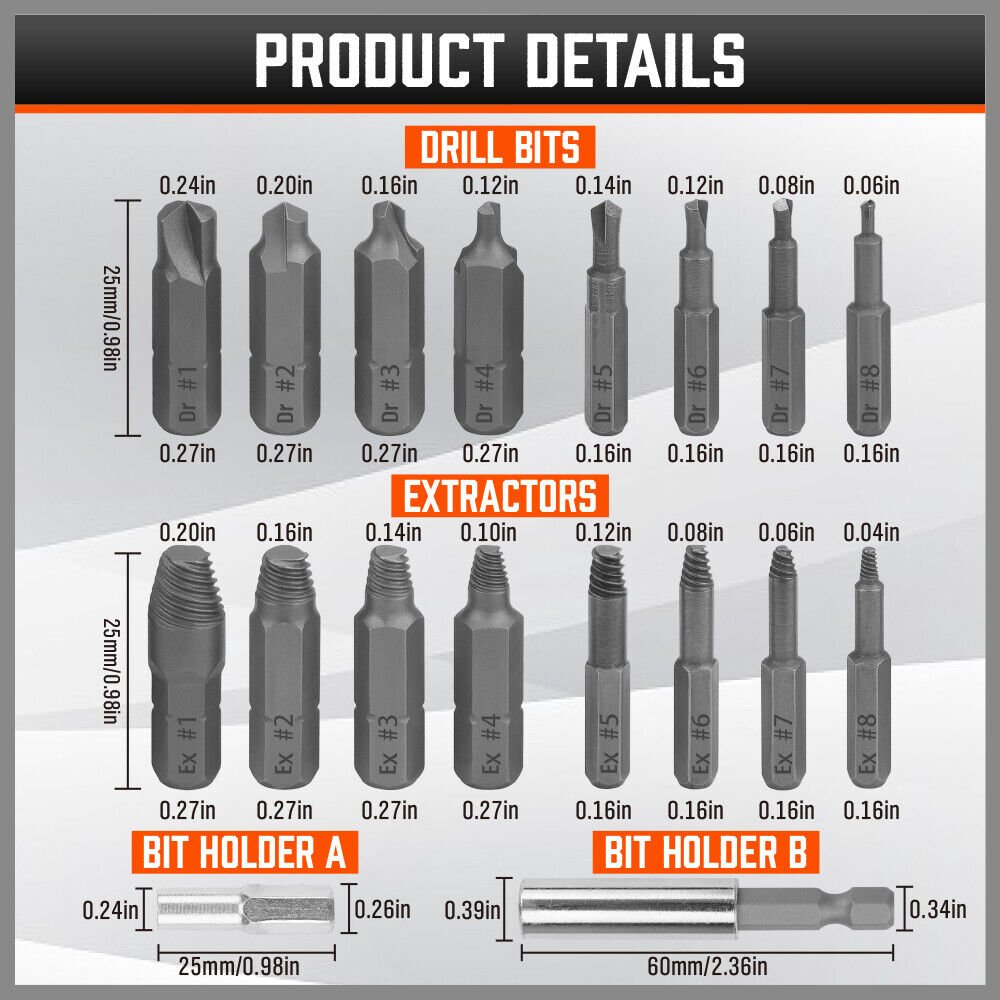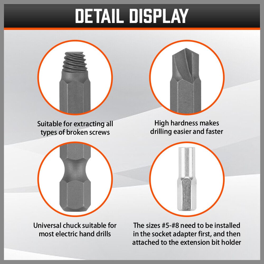 18x Magnetic Damaged Screw Extractor Set Broken Drill Bit Remover Kit Hex Crv by Generic is built for Australian outdoor use. As part of our Air & Tyre • Tools range, it offers reliable performance and practical design. Perfect for camping, 4WD trips and weekend adventures. Backed by RoamAU with fast nationwide shipping.