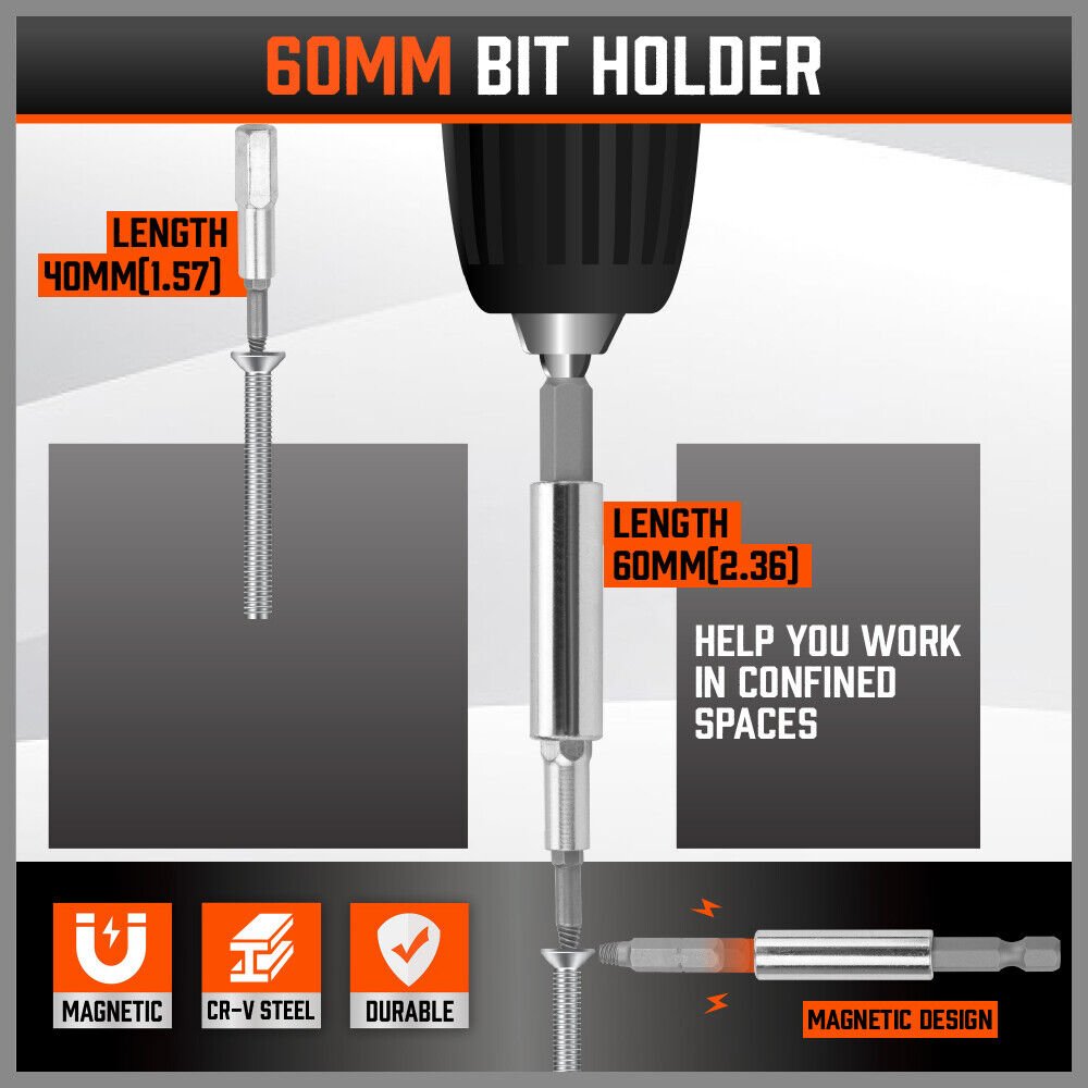 The bits need to be installed in the socket adapter first, and then they can be attached to the extension bit holder.