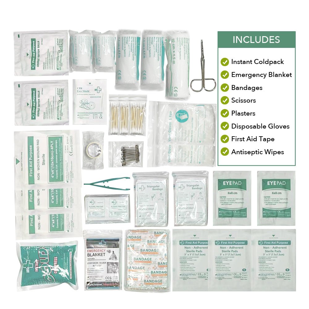 Night reflective, convenient design Packed with 210 useful and valuable hospital grade medical supplies.