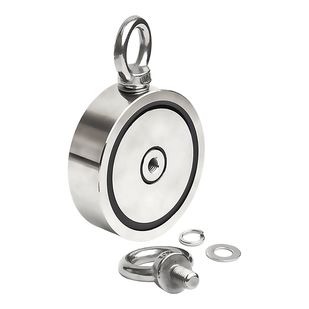 Looking for a two-sided magnet with the power to fish metallic objects from the water or buried in the ground? This 700-kilogramme-capacity neodymium magnet from Randy Travis Machinery provides two-sided pulling power with 350-kilogram pulling forces on each side.