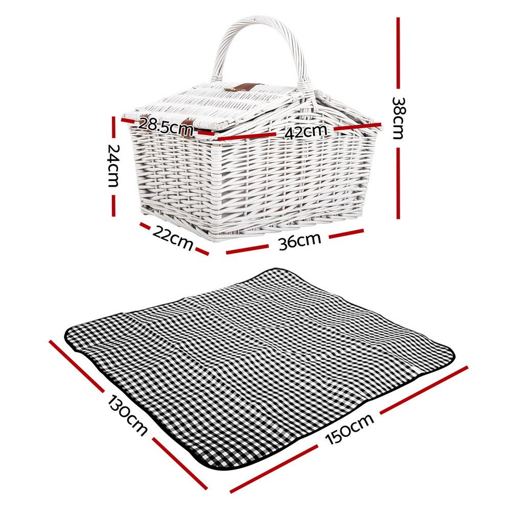 Made from quality willow with PU leather straps and cotton linen lining, this sensational 2 person picnic basket is designed for picnic fun. What's included are for 2 sets of cutleries, wine glasses, plates, napkins and even cheeseboard for an easy and enjoyable outdoor activities. Plus a colour matching blanket to sit on when you find a nice spot anywhere that you desire.This 2 person picnic basket is perfect for the races, harvest picnics, grape grazing events, Christmas and summer gatherings! You'll be surprised how often it will be used.