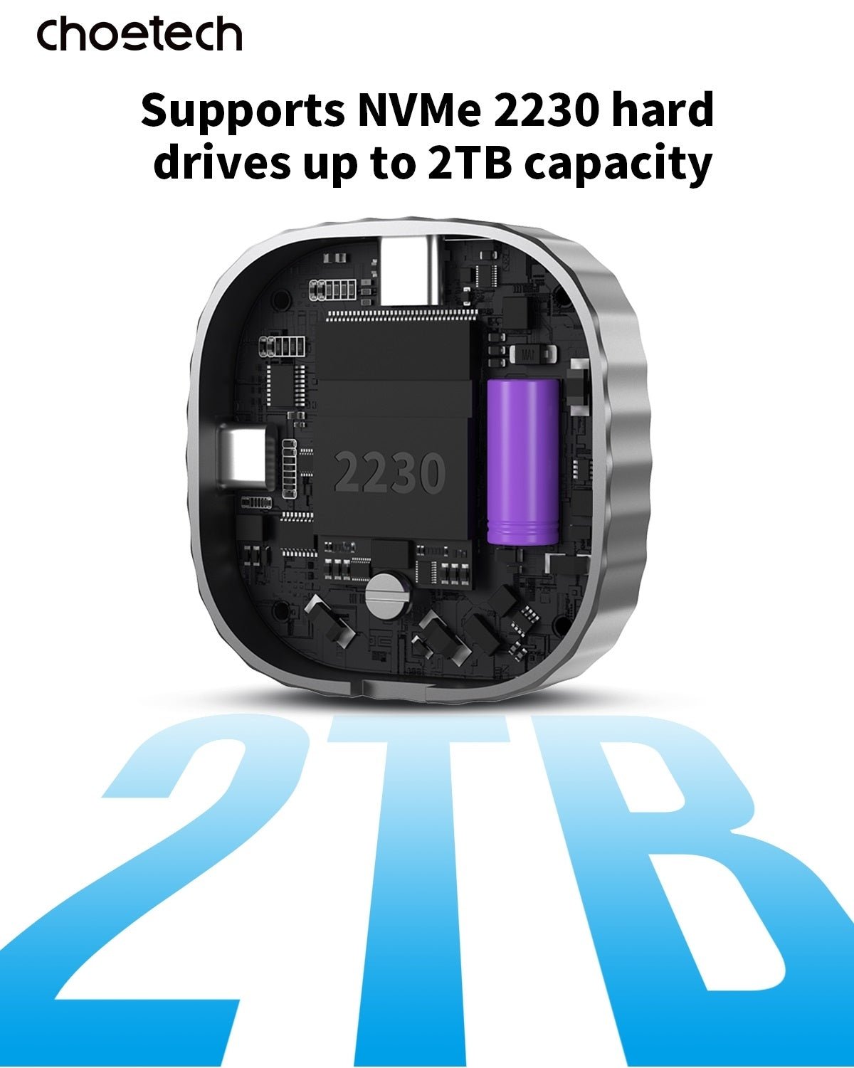 CHOETECH MSE001-GY Dual USB-C Port M.2 NVME 2230 Protocol SSD Enclosure with PD100W input Enclosure (Support 2TB Max) is built for Australian outdoor use. As part of our Tools • Boating range, it offers reliable performance and practical design. Perfect for camping, 4WD trips and weekend adventures. Backed by RoamAU with fast nationwide shipping.