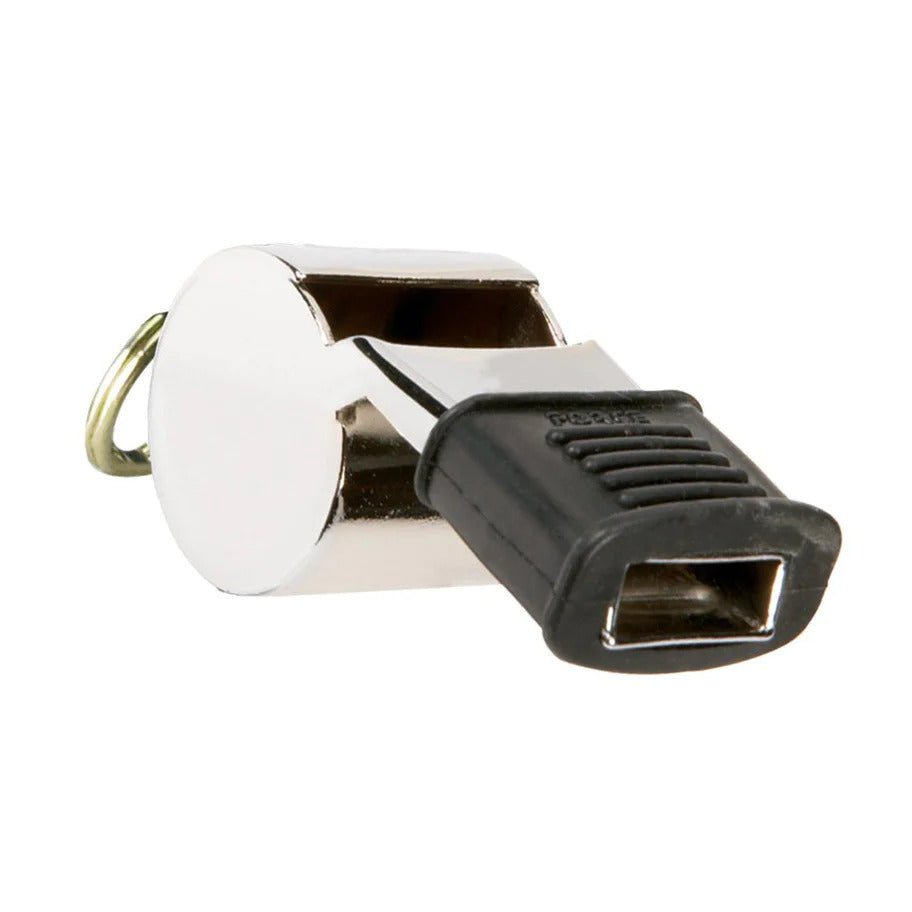 The Fox 40® Super Force CMG is a lead-free, nickel-plated brass, non-corrosive silver metal whistle. Lower tone, pea-style whistle with added cushioned Mouth Grip (CMG) for comfort.