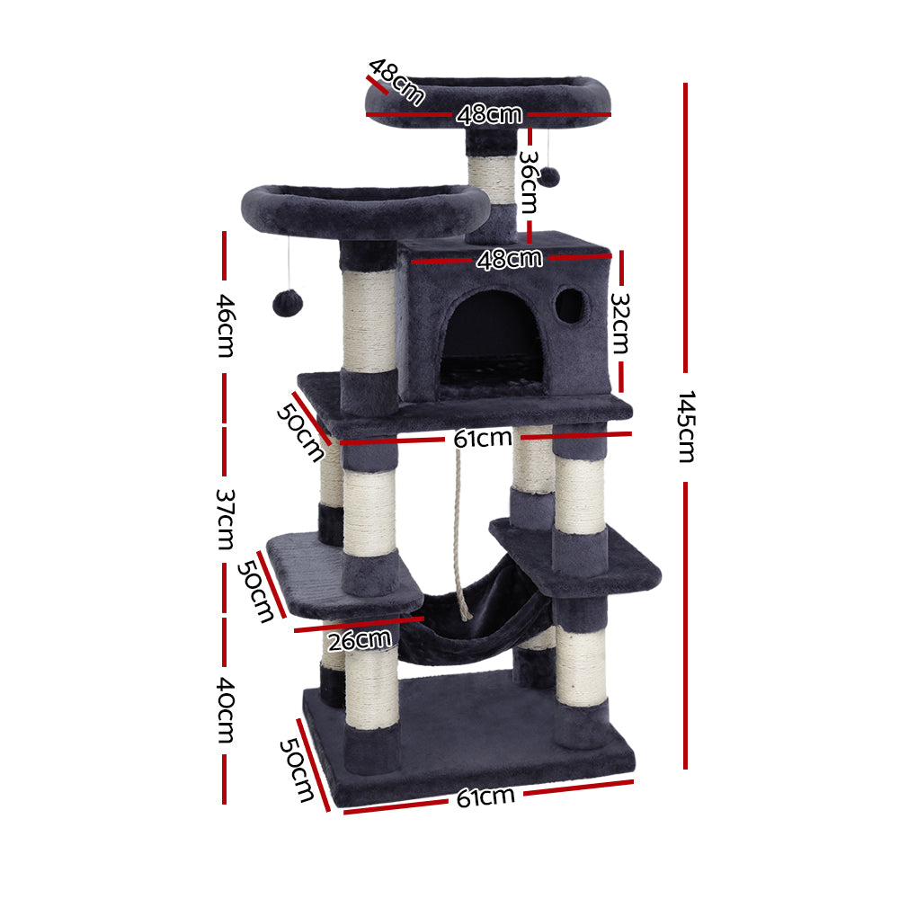 It is an absolutely feline wonderland with our i.Pet Cosmo Cat Tree! Built to satisfy the natural instincts of your precious pet, our cat tree includes a host of nooks and crannies for tom and tabby to have hours of fun scratching, hunting, climbing, jumping, hopping or simply lounging around. Even Garfield would be proud of this tree. Plus, with its sisal-covered scratching posts, you can rest assured that your furniture will stay cat-free for a very long time. Best of all, the sturdy construction with extra-thick 12cm posts and 4cm thick base, much thicker than the standard 6cm thick posts and 2cm thick base of most cat trees on the market, ensures that the tree remains a durable cat haven long into the future with total peace of mind for you. This cat tree is certainly an essential furniture for any cat owner and is just right for your cat's energetic exploration. Can we hear a meow to that?