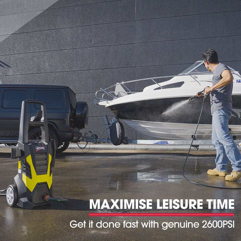 Harnessing an impressive 2600 PSI of pure cleaning power, powered by a robust 1800w motor, the Jet USA Electric Pressure Washer delivers outstanding performance that will effortlessly tackle even the toughest grime and dirt.