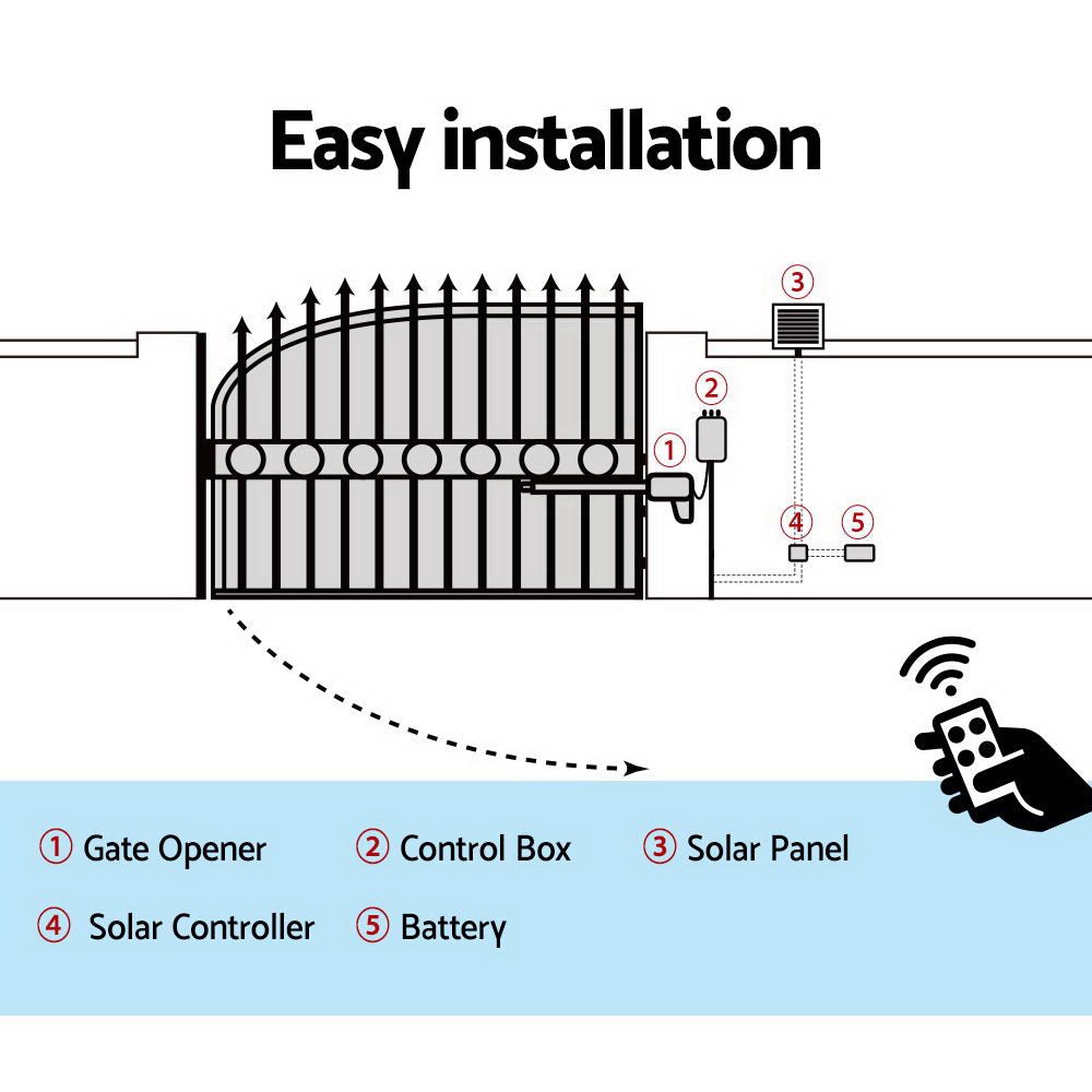 Introducing our LockMaster Solar-Powered Gate Opener, designed for effortless gate control. This advanced system ensures a smooth operation with gentle start and stop features, enhancing the lifespan of your gate. Safety is paramount; it automatically stops or reverses upon detecting any obstruction, ensuring peace of mind. Equipped with an emergency release key for power failures and a programmable auto-close feature, it offers convenience at your fingertips. Included remote control makes access seamless and secure.