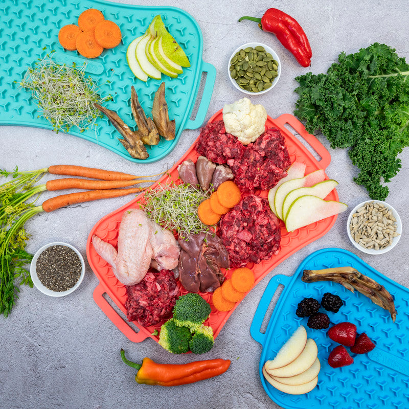 Made from thick, food-grade silicone that won’t curl or tear, it’s built to last through enthusiastic licking and regular dishwasher cycles. Use it as a standalone enrichment tool, a calming aid during bath time, or as a lid for your Super Feedy Slow Feeder Bowl to prep meals ahead or take food on the go. Simple, smart, and stress-reducing — this mat does it all.