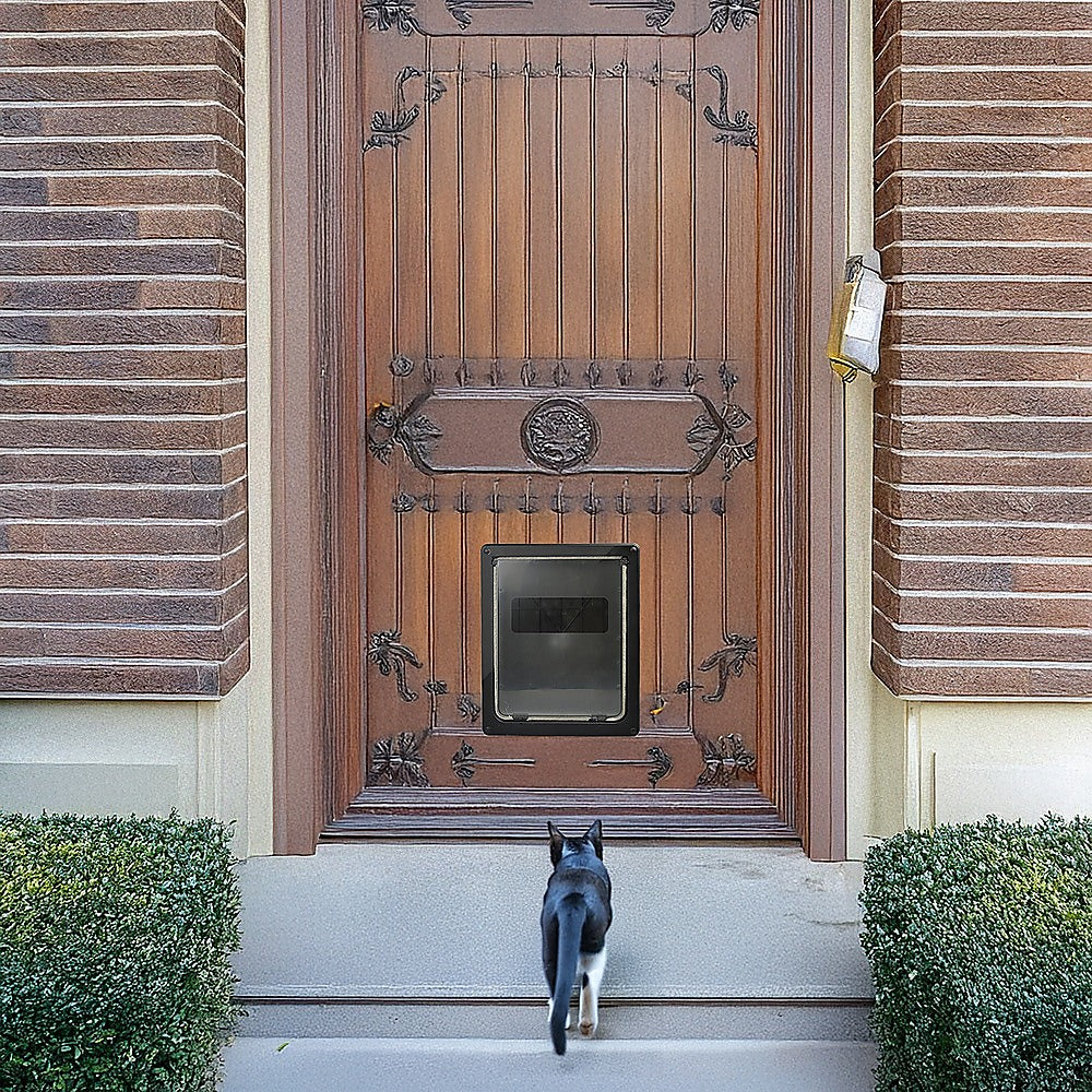 Its two-way construction allows pets to come inside and go outside easily, while the brushy flap allows them to pass through quietly.