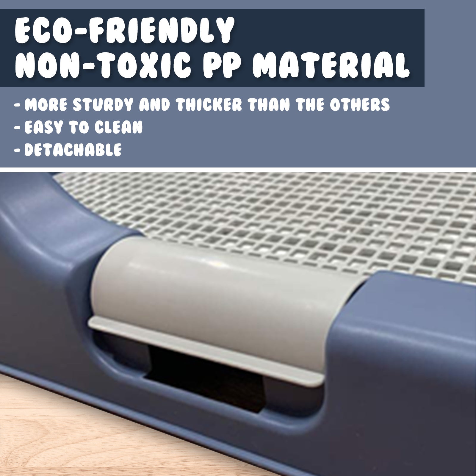 NO MORE TORN PADS ROLLING AROUND AND SWINGING PANEL: Mesh Panel is very easy to take on and off and prevents puppies from ripping apart pads or newspapers! The tray is always kept in place as there is a holder to fit it.