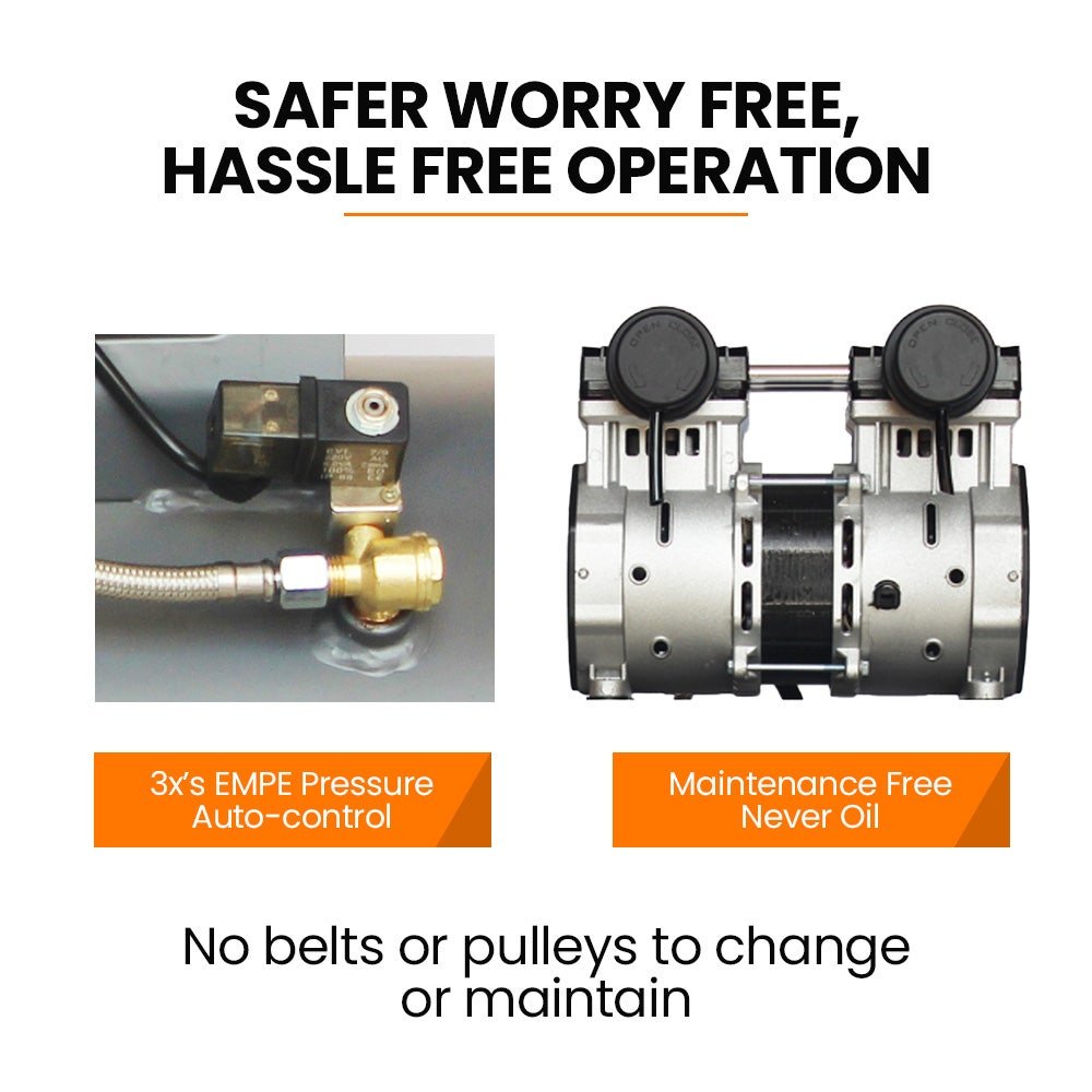 - Oil free compressor motor is built to last and is safe to use.