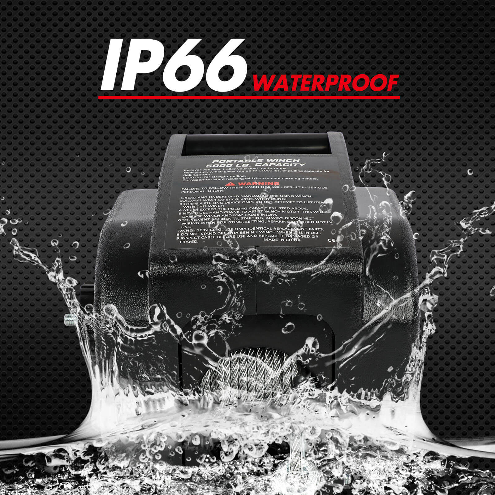 Waterproof Self-Closing Cover: This IP 66 waterproof electric boat winch with remote has a self-closing cover to protect the socket from dust and water.
